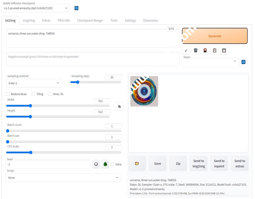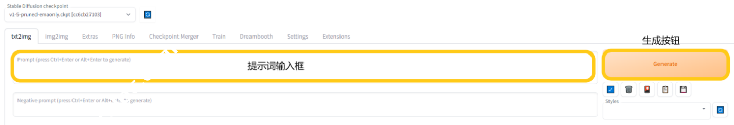 - 点击“txt2img”进入文生图界面
