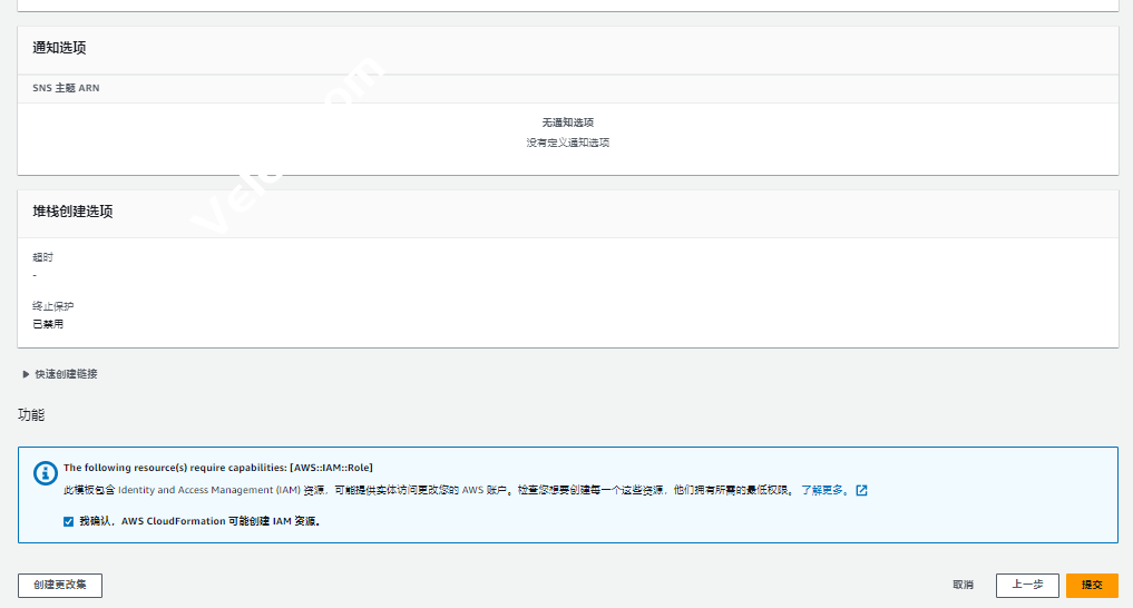 6. 确认配置(维持默认即可),勾选“我确认…”,点击“提交” ,等待 15-20 分钟部署完成。