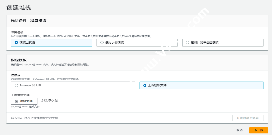 3. 创建堆栈 -使用新资源(标准)- Amazon S3 URL,填入 https://xiekl.s3.cn-northwest-1.amazonaws.com.cn/sd-webui.yml。