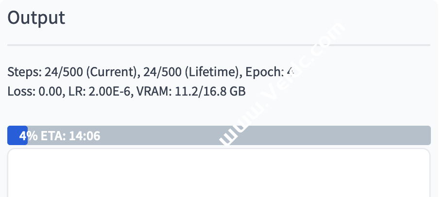 9. 观察右侧 Output 选项卡的训练进度,等待训练完成。