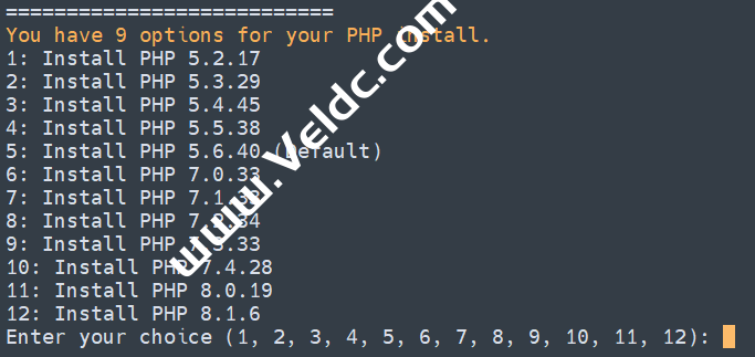 输入对应MySQL或MariaDB版本前面的序号,回车进入下一步.