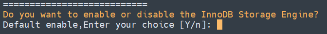 询问是否需要启用MySQL InnoDB,InnoDB引擎默认为开启,一般建议开启,直接回车或输入 y ,如果确定确实不需要该引擎可以输入 n,(MySQL 5.7+版本无法关闭InnoDB),输入完成,回车进入下一步。