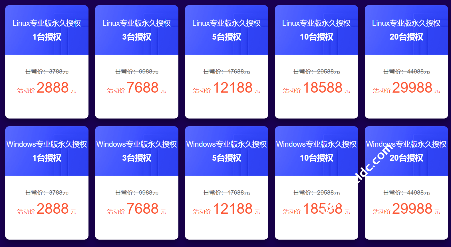 1、Linux/windows专业版为永久授权套餐。2、活动产品不参与返现,不支持补差价升级。3、活动产品,不支持退款。可开发票,登录后台自助申请。4、活动截止日期:2023年6月18日 23:59:59。