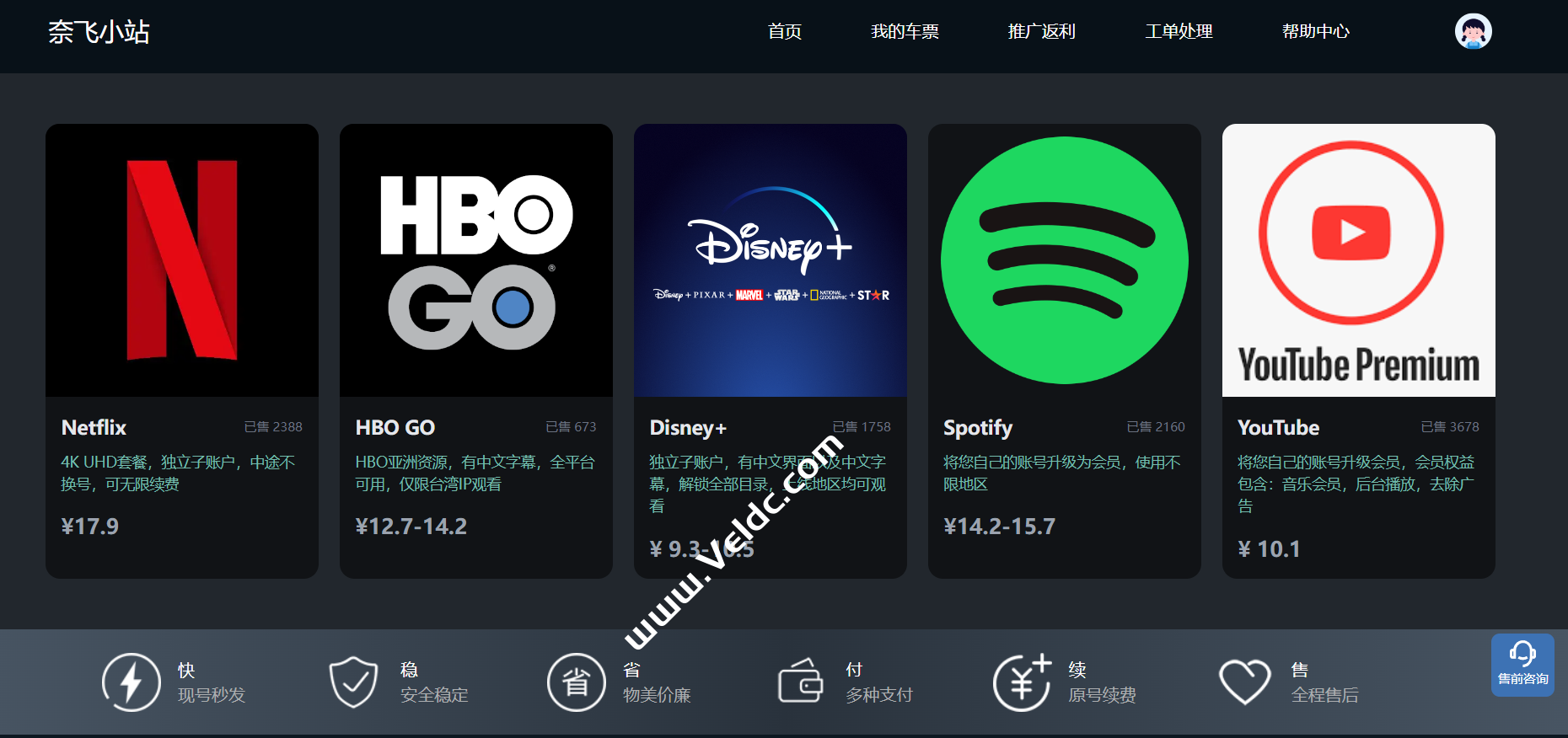 网站接入支付宝原生网关,支付十分便捷,已基本实现全自动化交付,具有完整的售前售后客服系统以及详尽的使用文档说明。