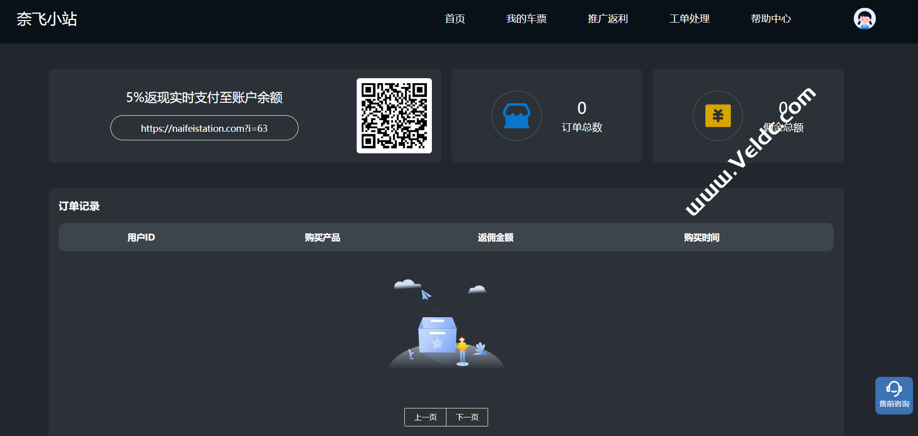 奈飞小站还配备邀请返利机制,用户如果介绍身边的朋友来小站购买任何产品即可获得5%的返利。