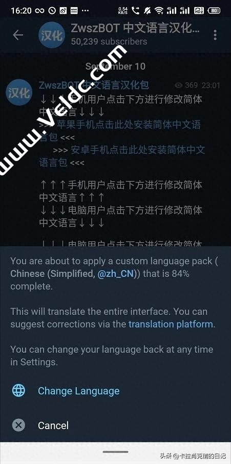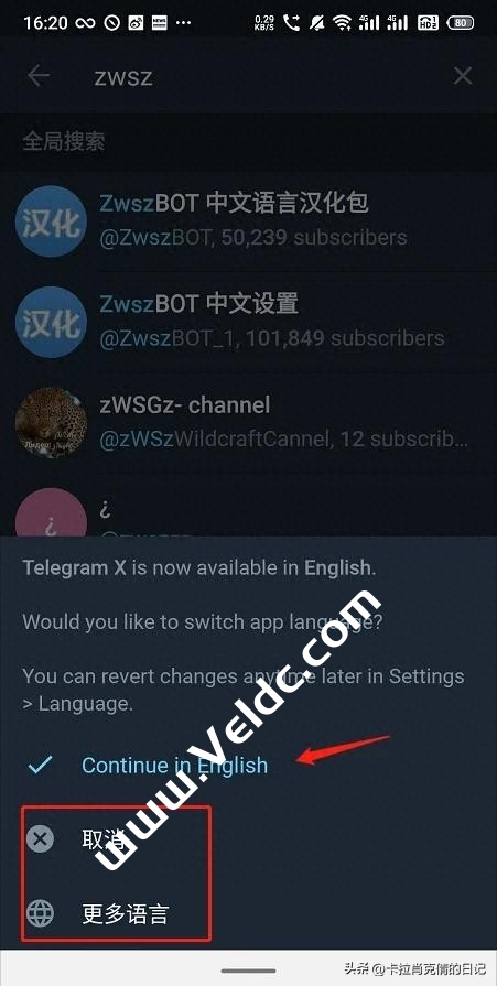 以上就是对Telegram(TG电报)和Telegram X两个版本的纸飞机英文设置成中文的全部过程,其实很简单,只需要复制“zwszbot”,剩下的就是选择题了,一路点击,就OK了。