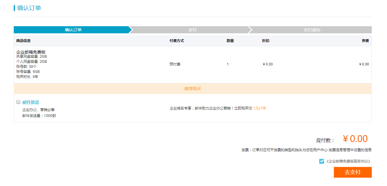 免费企业邮箱有很多,比如说网易企业邮箱、腾讯企业邮箱以及一些国外的这里就不一一介绍了。阿里云免费企业邮箱博主个人感觉比腾讯,网易的企业邮箱好用很多。腾讯邮箱各种坑……下面介绍一下阿里云的免费企业邮箱。这里一下可以申请5年,后期应该是可以无限续费的。