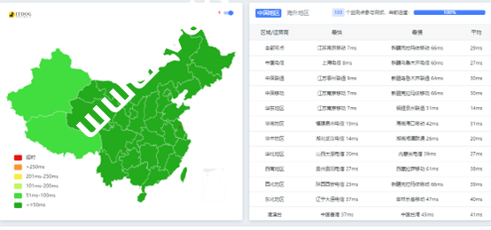 全国ping和tcpping延迟都非常低,非常适合建站业务。