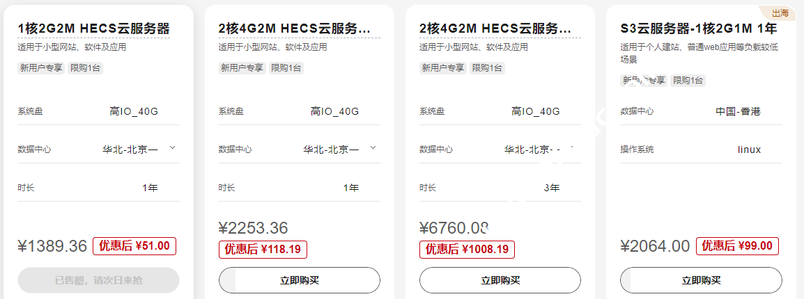华为云已经开启11.11预热活动促销,此次促销力度还是非常大的,比良心云价格还低,其中1核心2G2M HECS云服务器年付仅51元,可选北京、乌兰察布、上海和广州机房,每天上午9点开抢,抢完即止。也有适合外贸出海的云服务器,比如中国香港有一款1核2G1M的S3云服务器,年付仅99元,不过这都只是针对新用户专享的促销,此外还精选30+云产品,企业上云必备,还可参加注册认证抽奖活动,活动期间,用户完成企业认证,或单笔新购付费≥1000元,即可各获得1次抽奖机会,100%中奖!