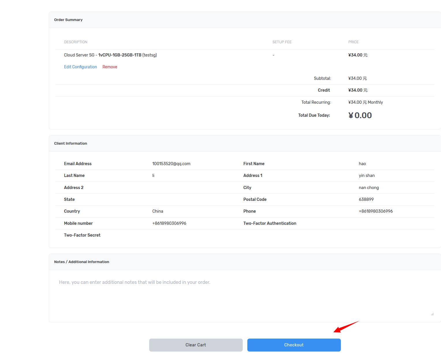 点击Checkout