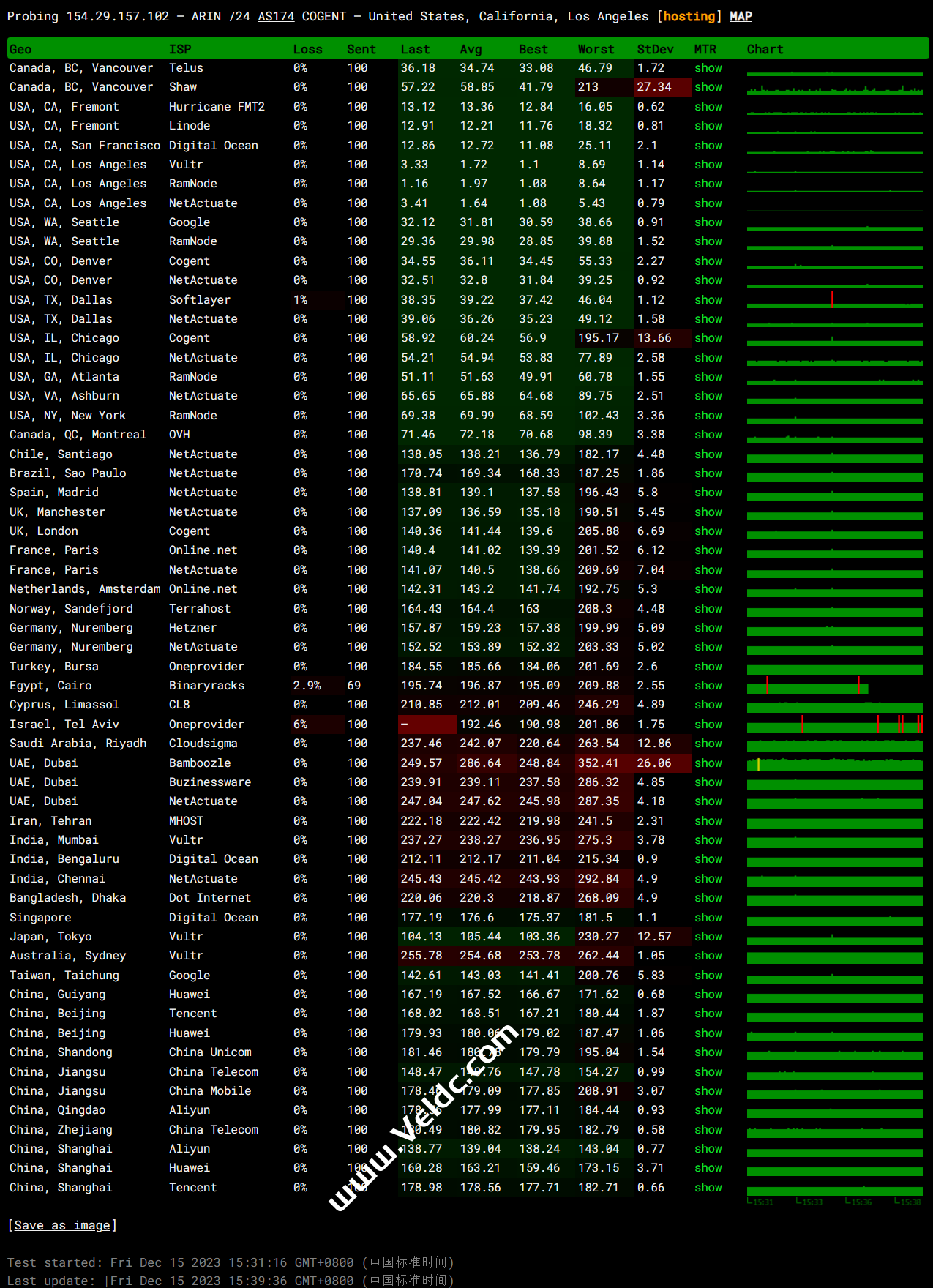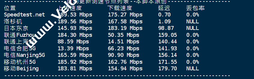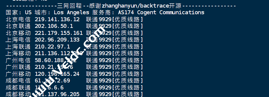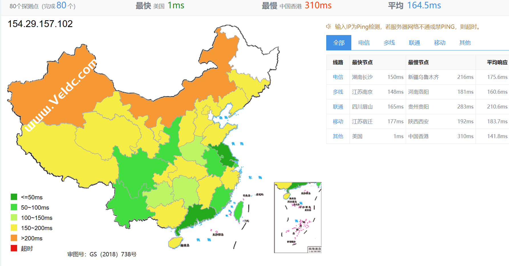 广州电信 58.60.188.222 1.70 ms * 局域网 15.32 ms AS35251 美国, 加利福尼亚州, 洛杉矶, alanyhq-global.net 0.73 ms * 局域网 156.62 ms AS10099 美国, chinaunicom.com, 联通 131.42 ms AS10099 中国, 香港, chinaunicom.com, 联通 131.02 ms AS9929 中国, 上海, chinaunicom.com, 联通 157.01 ms AS9929 中国, 广东, 广州, chinaunicom.com, 联通 158.03 ms * 中国, 广东, 广州, chinaunicom.com, 联通 175.65 ms AS4134 中国, 广东, 深圳, chinatelecom.com.cn, 电信 161.67 ms AS4134 中国, 广东, 深圳, chinatelecom.com.cn, 电信 广州联通 210.21.196.6 0.28 ms * 局域网 11.78 ms AS35251 美国, 加利福尼亚州, 洛杉矶, alanyhq-global.net 0.44 ms * 局域网 156.58 ms AS10099 美国, chinaunicom.com, 联通 137.40 ms AS10099 中国, 上海, chinaunicom.com, 联通 137.75 ms AS9929 中国, 上海, chinaunicom.com, 联通 163.74 ms AS9929 中国, 广东, 广州, chinaunicom.com, 联通 164.71 ms * 中国, 广东, 广州, chinaunicom.com, 联通 173.83 ms AS4837 中国, 广东, 广州, chinaunicom.com, 联通 166.76 ms AS4837 中国, 广东, 广州, chinaunicom.com, 联通 201.63 ms AS17816 中国, 广东, 深圳, chinaunicom.com, 联通 180.08 ms AS17623 中国, 广东, 深圳, chinaunicom.com, 联通 176.49 ms AS17623 中国, 广东, 深圳, chinaunicom.com, 联通 广州移动 120.196.165.24 0.26 ms * 局域网 23.64 ms AS35251 美国, 加利福尼亚州, 洛杉矶, alanyhq-global.net 0.60 ms * 局域网 156.98 ms AS10099 美国, chinaunicom.com, 联通 137.39 ms AS10099 中国, 上海, chinaunicom.com, 联通 138.11 ms AS9929 中国, 上海, chinaunicom.com, 联通 164.16 ms AS9929 中国, 广东, 广州, chinaunicom.com, 联通 163.82 ms * 中国, 广东, 广州, chinaunicom.com, 联通 175.71 ms AS4837 中国, 广东, 广州, chinaunicom.com, 联通 173.58 ms AS4837 中国, 广东, 广州, chinaunicom.com, 联通 172.06 ms AS9808 中国, 广东, 广州, chinamobile.com, 移动 177.34 ms AS9808 中国, 广东, 广州, chinamobile.com, 移动 176.86 ms AS9808 中国, 广东, 广州, chinamobile.com, 移动 176.77 ms AS56040 中国, 广东, 深圳, chinamobile.com, 移动