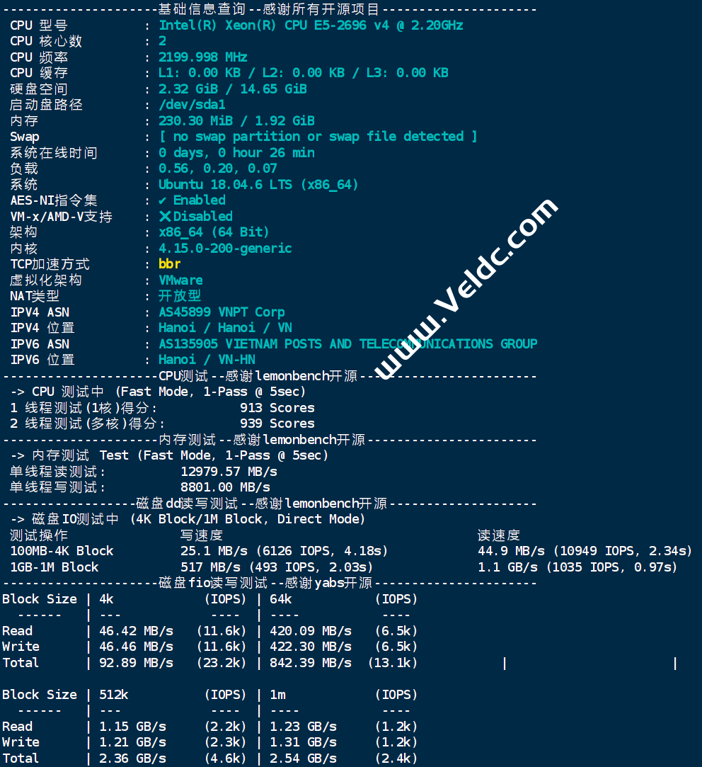Vmware虚拟化,使用 VNPT ISP 线路,此产品推荐给中国电信和联通用户。以下为原价,购买请使用8折优惠码:HITOT