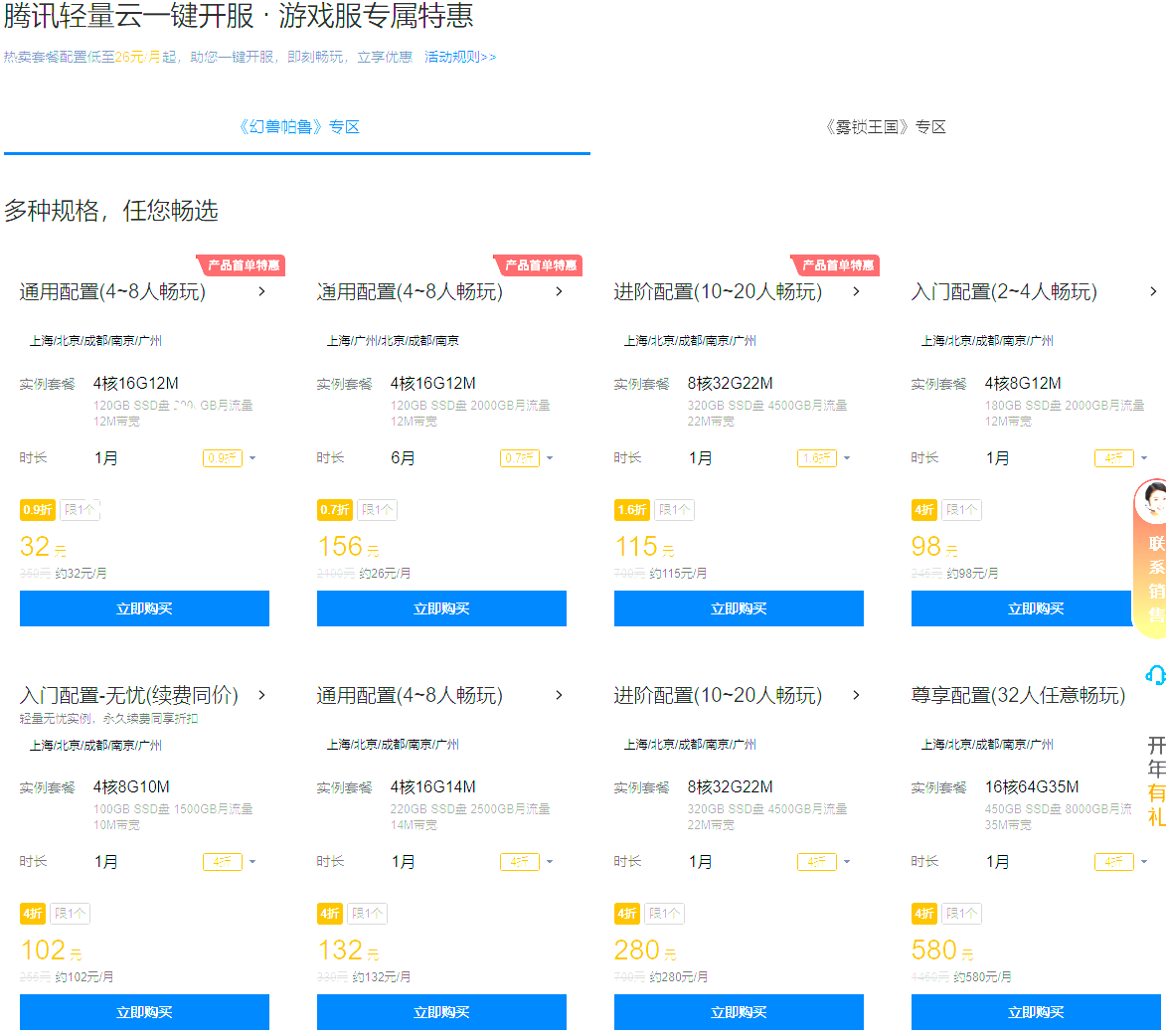 热卖套餐配置低至26元/月起,助您一键开服,即刻畅玩,立享优惠,点此直达腾讯云活动专区