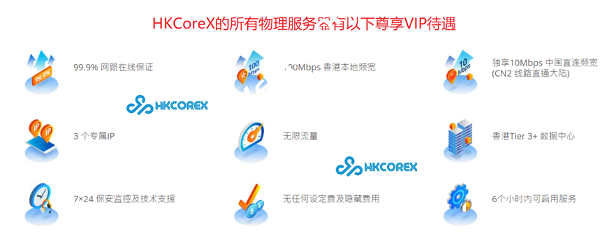 HKCOREX拥有超过十年的行业经验,主要专注发展网页寄存、电子商贸寄存、专属服务器托管及自定义管理服务企业方案,为世界各地各种规模的企业提供企业级托管服务及优质长远的企业方案。简单易用和高安全性是我们最优先的考虑因素,让企业客户保持专注及有效地拓展业务。