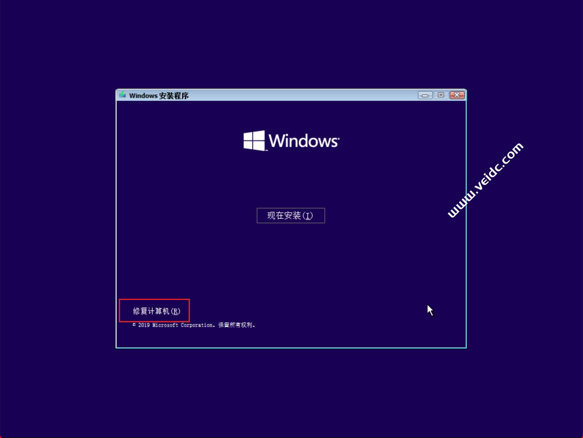 1、看到系统安装界面;就是正常重新安装操作系统那个。选择**“修复计算机”**