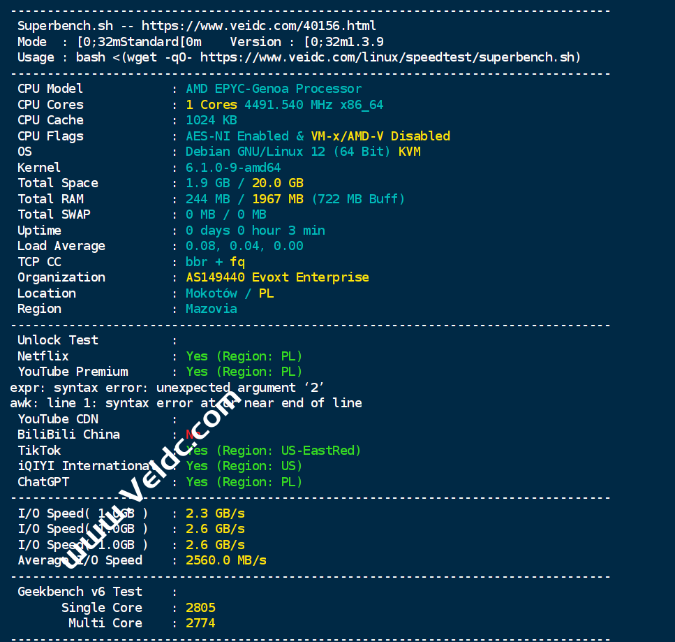 - Evoxt:波兰华沙VPS测评,1Gbps大带宽/解锁美区Tiktok/支持Netflix,ChatGPT等/每周免费备份,月付2.84美元起