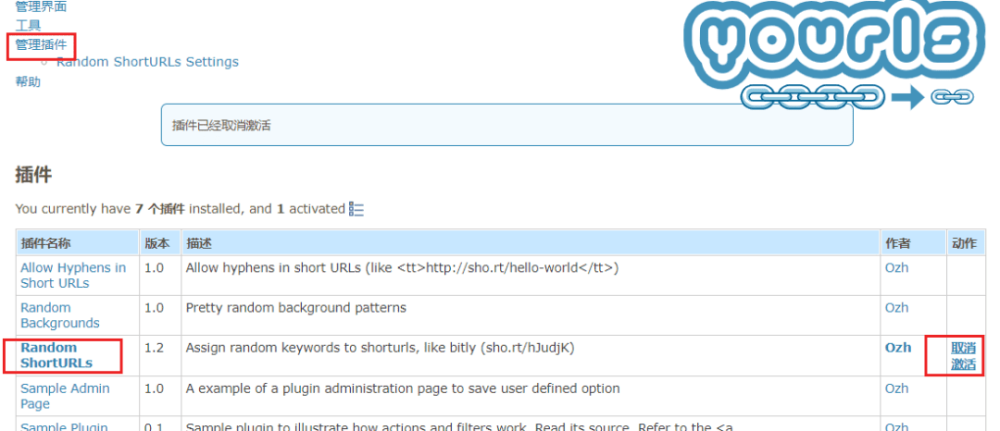 先激活自带的Random SHortURLs插件,它可以让短链末尾生成随机的字符串。