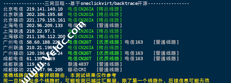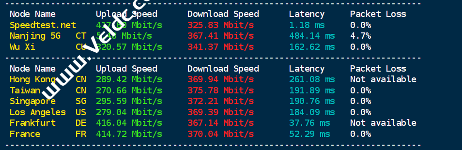 Traceroute to China, Guangzhou CT (TCP Mode, Max 30 Hop) ============================================================ traceroute to 113.108.209.1 (113.108.209.1), 30 hops max, 32 byte packets 1 195.133.5.1 0.71 ms AS51659 Russian Federation, Moscow, relcom.ru 2 10.128.0.9 0.68 ms * LAN Address 3 10.32.0.26 1.64 ms * LAN Address 4 * 5 145.14.89.1 1.55 ms * Russian Federation, Moscow, cteurope.net 6 59.43.246.17 84.39 ms * China, Beijing, ChinaTelecom 7 59.43.182.246 129.53 ms * China, Guangdong, Guangzhou, ChinaTelecom 8 * 9 * 10 * 11 * 12 * 13 * 14 * 15 * 16 * 17 * 18 * 19 * 20 * 21 * 22 * 23 * 24 * 25 * 26 * 27 * 28 * 29 * 30 * Traceroute to China, Shanghai CT (TCP Mode, Max 30 Hop) ============================================================ traceroute to 180.153.28.5 (180.153.28.5), 30 hops max, 32 byte packets 1 195.133.5.1 3.63 ms AS51659 Russian Federation, Moscow, relcom.ru 2 10.128.0.9 0.44 ms * LAN Address 3 10.32.1.50 42.95 ms * LAN Address 4 80.249.214.131 191.83 ms * Netherlands, North Holland, Amsterdam, ams-ix.net 5 * 6 * 7 * 8 * 9 * 10 222.73.35.98 193.35 ms AS4812 China, Shanghai, ChinaTelecom 11 * 12 * 13 * 14 * 15 * 16 * 17 * 18 * 19 * 20 * 21 * 22 * 23 * 24 * 25 * 26 * 27 * 28 * 29 * 30 * Traceroute to China, Beijing CT (TCP Mode, Max 30 Hop) ============================================================ traceroute to 180.149.128.9 (180.149.128.9), 30 hops max, 32 byte packets 1 195.133.5.1 1.28 ms AS51659 Russian Federation, Moscow, relcom.ru 2 10.128.0.9 2.28 ms * LAN Address 3 10.32.0.26 0.60 ms * LAN Address 4 * 5 145.14.89.1 4.51 ms * Russian Federation, Moscow, cteurope.net 6 59.43.246.17 84.33 ms * China, Beijing, ChinaTelecom 7 * 8 * 9 * 10 * 11 * 12 * 13 * 14 * 15 * 16 * 17 * 18 * 19 * 20 * 21 * 22 * 23 * 24 * 25 * 26 * 27 * 28 * 29 * 30 * Traceroute to China, Guangzhou CU (TCP Mode, Max 30 Hop) ============================================================ traceroute to 210.21.4.130 (210.21.4.130), 30 hops max, 32 byte packets 1 195.133.5.1 0.73 ms AS51659 Russian Federation, Moscow, relcom.ru 2 10.128.0.9 0.53 ms * LAN Address 3 10.32.0.26 1.18 ms * LAN Address 4 10.128.0.129 8.16 ms * LAN Address 5 145.14.89.1 1.31 ms * Russian Federation, Moscow, cteurope.net 6 59.43.246.17 84.33 ms * China, Beijing, ChinaTelecom 7 59.43.247.98 116.51 ms * China, Guangdong, Guangzhou, ChinaTelecom 8 59.43.244.138 117.02 ms * China, Guangdong, Guangzhou, ChinaTelecom 9 * 10 202.97.72.1 121.57 ms AS4134 China, Guangdong, Guangzhou, ChinaTelecom 11 * 12 * 13 219.158.119.13 147.84 ms AS4837 China, Guangdong, Guangzhou, ChinaUnicom 14 112.89.0.62 138.43 ms AS17816 China, Guangdong, Guangzhou, ChinaUnicom 15 120.80.91.66 126.87 ms AS17816 China, Guangdong, Guangzhou, ChinaUnicom 16 * 17 * 18 * 19 * 20 * 21 * 22 * 23 * 24 * 25 * 26 * 27 * 28 * 29 * 30 * Traceroute to China, Shanghai CU (TCP Mode, Max 30 Hop) ============================================================ traceroute to 58.247.8.158 (58.247.8.158), 30 hops max, 32 byte packets 1 195.133.5.1 0.83 ms AS51659 Russian Federation, Moscow, relcom.ru 2 10.128.0.9 0.79 ms * LAN Address 3 10.32.0.26 2.97 ms * LAN Address 4 10.128.0.129 3.82 ms * LAN Address 5 145.14.89.1 1.57 ms * Russian Federation, Moscow, cteurope.net 6 59.43.246.17 85.40 ms * China, Beijing, ChinaTelecom 7 59.43.182.226 111.67 ms * China, Shanghai, ChinaTelecom 8 * 9 * 10 * 11 * 12 * 13 * 14 * 15 * 16 58.247.8.153 127.67 ms AS17621 China, Shanghai, ChinaUnicom 17 * 18 * 19 * 20 * 21 * 22 * 23 * 24 * 25 * 26 * 27 * 28 * 29 * 30 * Traceroute to China, Beijing CU (TCP Mode, Max 30 Hop) ============================================================ traceroute to 123.125.99.1 (123.125.99.1), 30 hops max, 32 byte packets 1 195.133.5.1 0.74 ms AS51659 Russian Federation, Moscow, relcom.ru 2 10.128.0.9 0.63 ms * LAN Address 3 10.32.0.26 0.49 ms * LAN Address 4 10.128.0.129 3.73 ms * LAN Address 5 145.14.89.1 2.35 ms * Russian Federation, Moscow, cteurope.net 6 59.43.246.17 84.38 ms * China, Beijing, ChinaTelecom 7 * 8 * 9 * 10 * 11 * 12 * 13 * 14 61.51.169.178 127.01 ms AS4808 China, Beijing, ChinaUnicom 15 * 16 * 17 123.125.99.1 106.33 ms AS4808 China, Beijing, ChinaUnicom Traceroute to China, Guangzhou CM (TCP Mode, Max 30 Hop) ============================================================ traceroute to 120.196.212.25 (120.196.212.25), 30 hops max, 32 byte packets 1 195.133.5.1 1.14 ms AS51659 Russian Federation, Moscow, relcom.ru 2 10.128.0.9 0.38 ms * LAN Address 3 10.32.0.26 11.65 ms * LAN Address 4 * 5 145.14.89.1 2.16 ms * Russian Federation, Moscow, cteurope.net 6 59.43.246.17 84.41 ms * China, Beijing, ChinaTelecom 7 59.43.182.246 118.58 ms * China, Guangdong, Guangzhou, ChinaTelecom 8 * 9 202.97.12.42 119.14 ms AS4134 China, Guangdong, Guangzhou, ChinaTelecom 10 202.97.72.1 120.05 ms AS4134 China, Guangdong, Guangzhou, ChinaTelecom 11 * 12 * 13 221.183.90.217 185.20 ms AS9808 China, Guangdong, Guangzhou, ChinaMobile 14 * 15 183.235.226.161 203.91 ms AS56040 China, Guangdong, Guangzhou, ChinaMobile 16 211.136.203.6 202.63 ms AS56040 China, Guangdong, Guangzhou, ChinaMobile 17 211.136.203.22 191.42 ms AS56040 China, Guangdong, Guangzhou, ChinaMobile 18 120.197.234.140 194.12 ms AS56040 China, Guangdong, Guangzhou, ChinaMobile 19 * 20 * 21 * 22 * 23 * 24 * 25 * 26 * 27 * 28 * 29 * 30 * Traceroute to China, Shanghai CM (TCP Mode, Max 30 Hop) ============================================================ traceroute to 221.183.55.22 (221.183.55.22), 30 hops max, 32 byte packets 1 195.133.5.1 0.67 ms AS51659 Russian Federation, Moscow, relcom.ru 2 10.128.0.9 0.42 ms * LAN Address 3 10.32.0.77 36.96 ms * LAN Address 4 83.231.214.241 49.09 ms AS2914 Germany, Hesse, Frankfurt, ntt.com 5 129.250.5.43 37.43 ms AS2914 Germany, Hesse, Frankfurt, ntt.com 6 129.250.6.1 37.93 ms AS2914 Germany, Hesse, Frankfurt, ntt.com 7 129.250.7.13 48.93 ms AS2914 Austria, Vienna, ntt.com 8 * 9 129.250.5.242 193.65 ms AS2914 Singapore, ntt.com 10 223.120.22.133 294.54 ms AS58453 China, Hong Kon