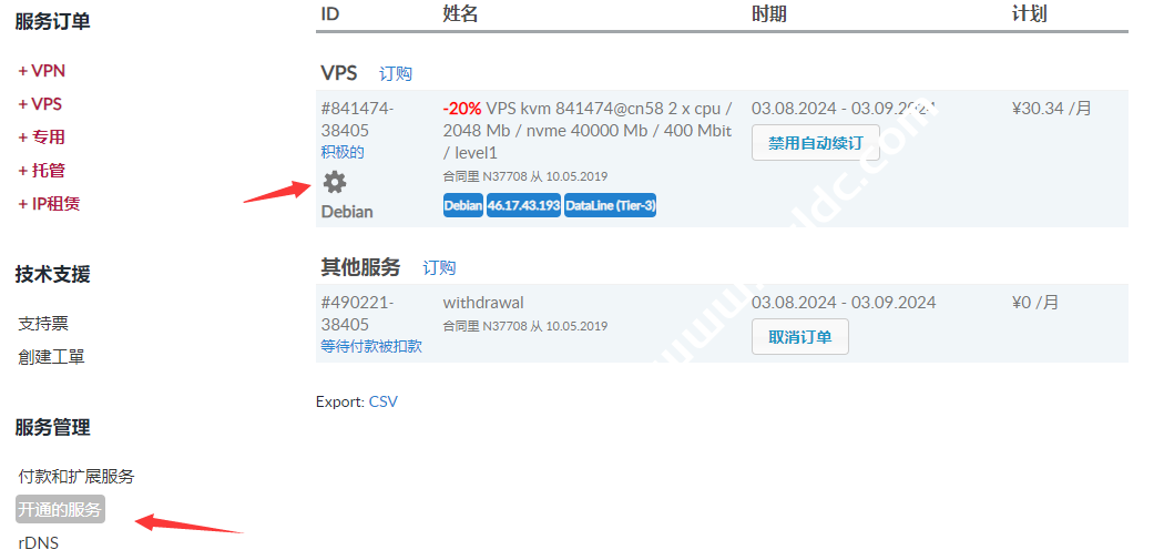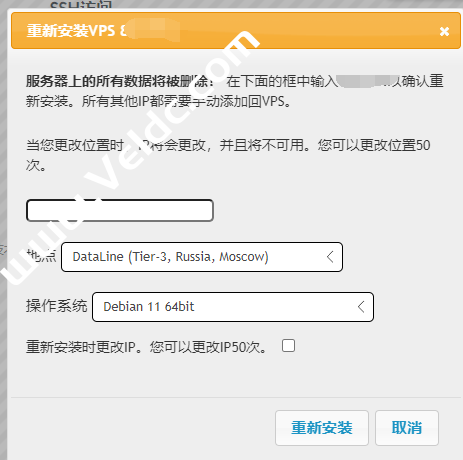 Tips:在该字段中,您必须输入 VPS 的 ID 号,不得有空格。