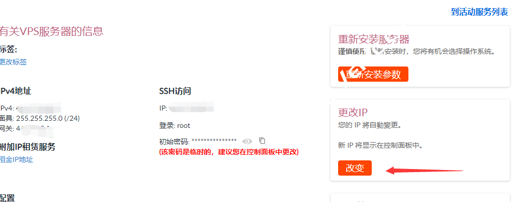 - 在“Management”部分,点击“Change”按钮。 操作完成!您的IP地址已成功更改。具体如下: