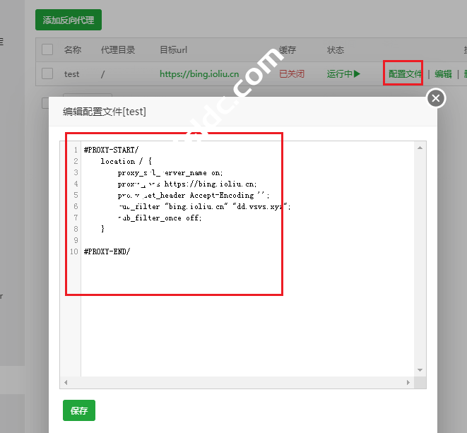 #PROXY-START/ location / { proxy_ssl_server_name on; proxy_pass https://bing.ioliu.cn; proxy_set_header Accept-Encoding ''; sub_filter "bing.ioliu.cn" "dd.vsvs.xyz"; sub_filter_once off; } #PROXY-END/