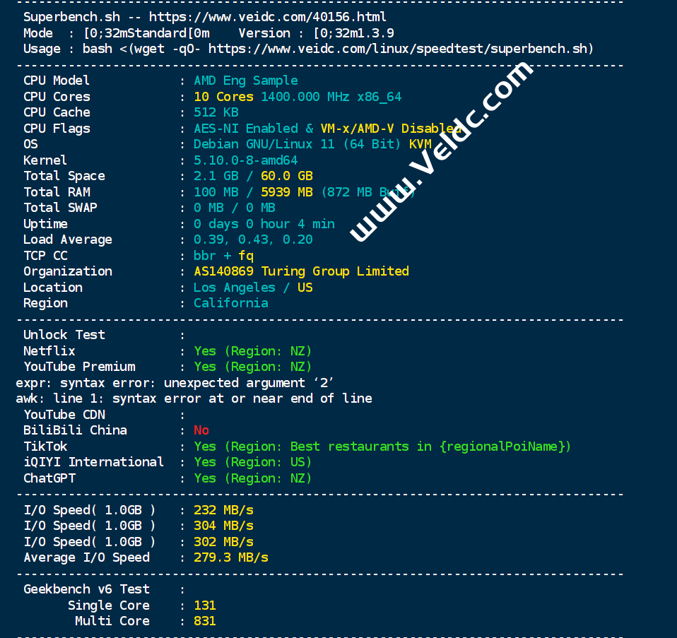 | AMD EPYC 10核 | 6 GB | 60 GB NVMe | 1 个 | 80M/4T(中国电信CN2 GIA) | $29.90/月 | 直达 |