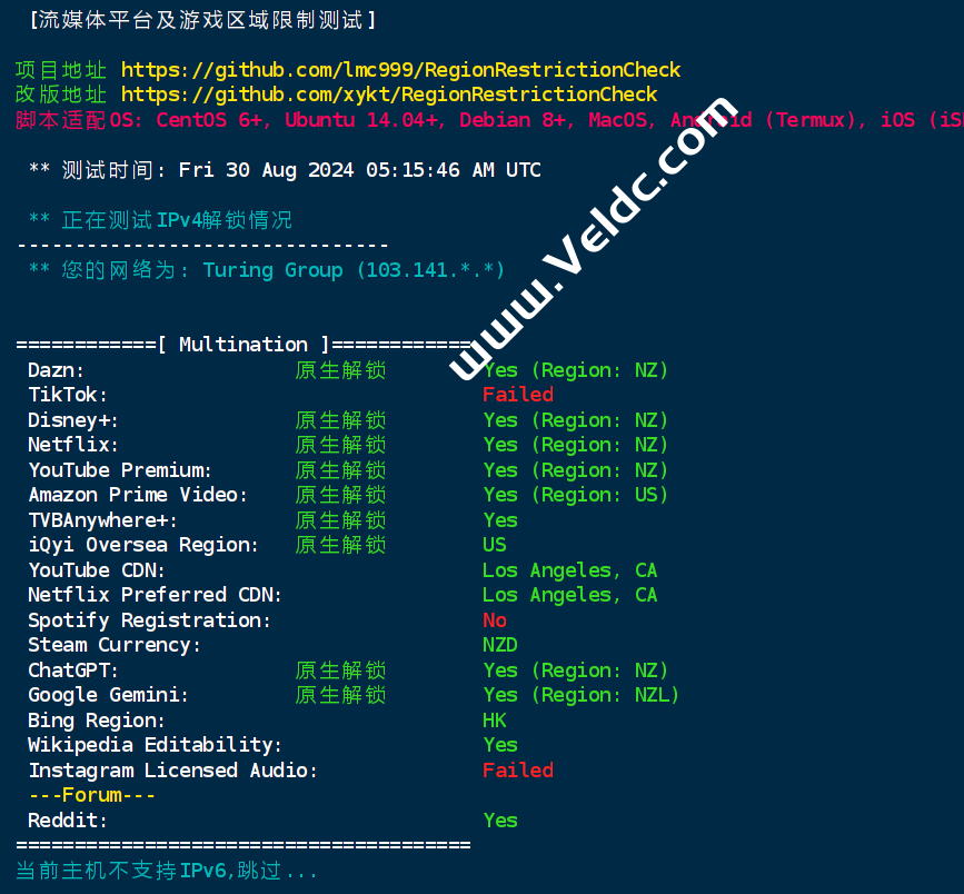 Dotdotnetworks的中国电信CN2GIA系列VPS依旧采用最新一代AMD EPYC线程撕裂者处理器+DDR4高速内存+Nvme企业级SSD,商家承诺VPS可以100%享受到所购买的高性能资源。电信CN2GIA线路接入,最快的回国线路!另接入Arelion、Cogent等高速国际线路。带宽从30Mbps起步,最高100Mbps,可选限流量或不限流量型,最便宜配置2核1GB内存,20GB NVMe存储,30Mbps@600GB,季付14.9美元,性价比还可以,月付机型7.9美元起,可以使用首月6折优惠,线路支持Netflix、Disney、YouTube等流媒体,支持ChatGPT、Google Gemini等应用,解锁区域为新西兰,下面是详细测评。