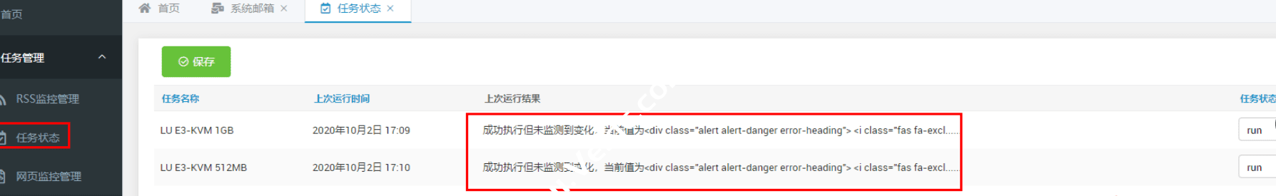 4)以上保存即可完成监控项目的创建,下面找到任务状态可以看一下你添加的监控项目是否能够正常工作: