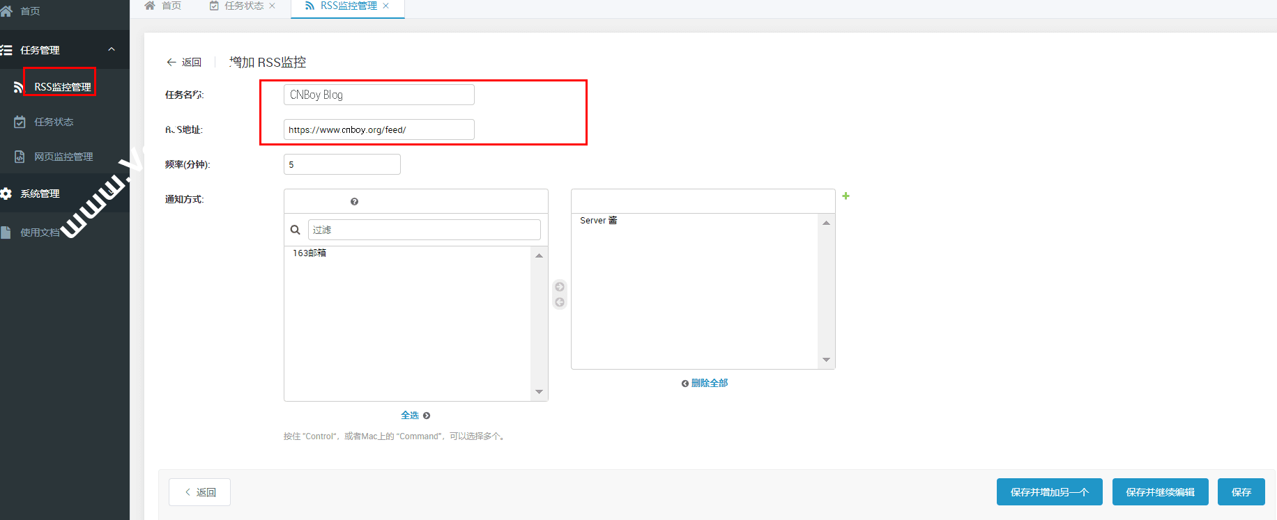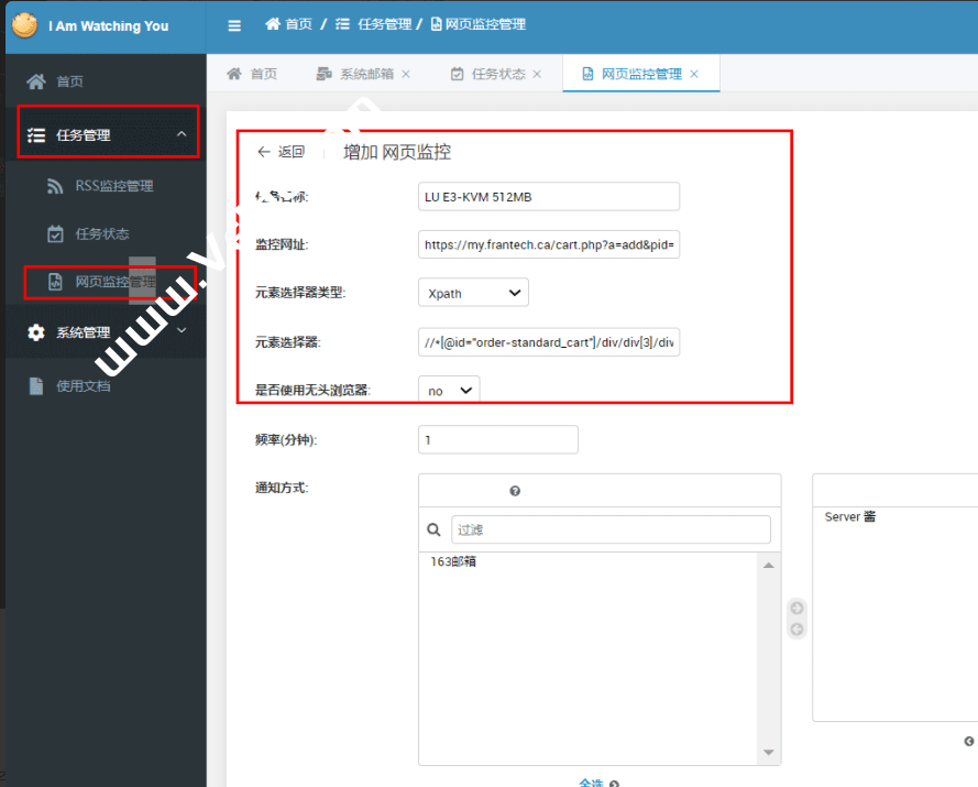 2)添加一个监控项目,在任务管理-网页监控管理-添加你的第一个监控。