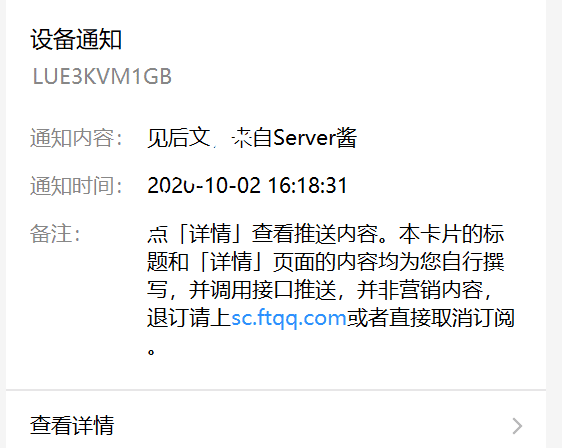 5)初次添加的监控项目,如果正常的话你的微信也应该能够收到Server酱发来的消息: