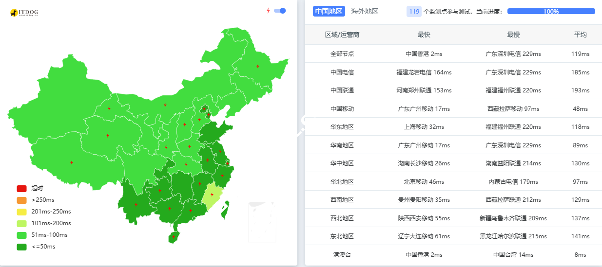 中国地区PING测试: