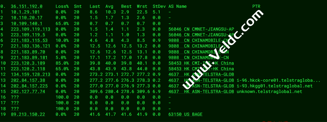 从测试情况来看海外各地访问还是很稳定的基本都没有丢包的情况,而国内节点网络就不太稳定的,整体来说丢包比较严重。