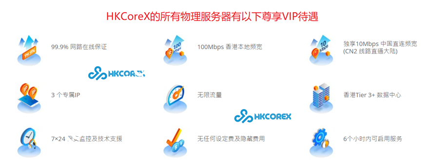 HKCOREX电讯的物理服务器、机房托管服务能够提供7×24小时不间断的售后服务,全部都是香港本地团队为您服务,真正做到售后无忧!服务器产品支持在线申请试用!满意再转为正式租用!