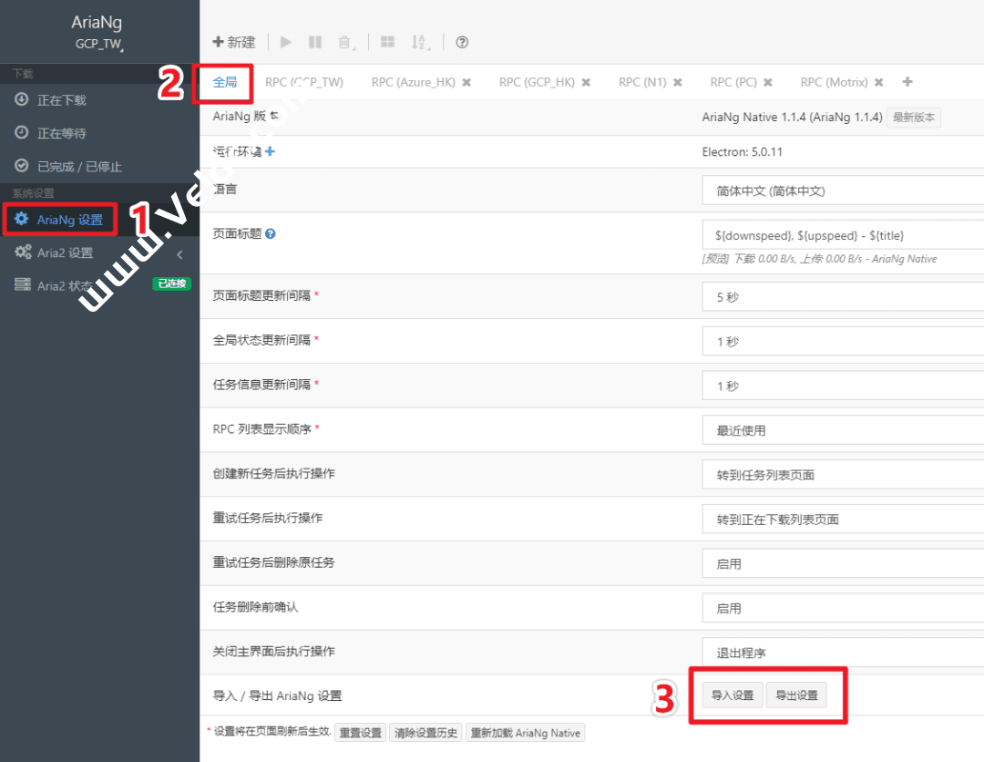 AriaNg 导入/导出设置