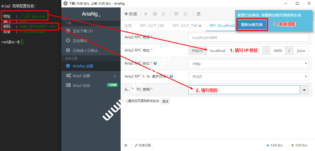 AriaNg 连接 Aria2 服务端