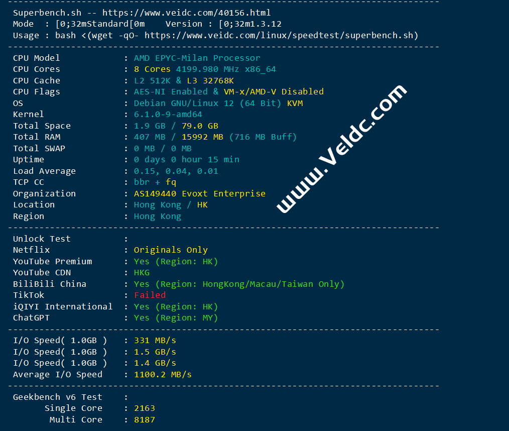 Evoxt商家发来好消息说香港VPS已经恢复CMI线路,电信双程CN2,早在去年10月份左右因为一些原因香港VPS取消了CMI走国际线路,这让很多用户不得不换其它商家,现在恢复了移动CMI,而且电信还双程CN2,网络质量进一步提高,价格仍为月付2.99美元起,但香港和日本机房的流量要少一些,全部为1Gbps带宽,无论是建站还是其它应用都挺不错。现在购买使用国外主机测评专属优惠码:VEIDC,可以享受95折优惠,支持支付宝、微信、PayPal、比特币和 USDT付款,下面是香港VPS最新测评。