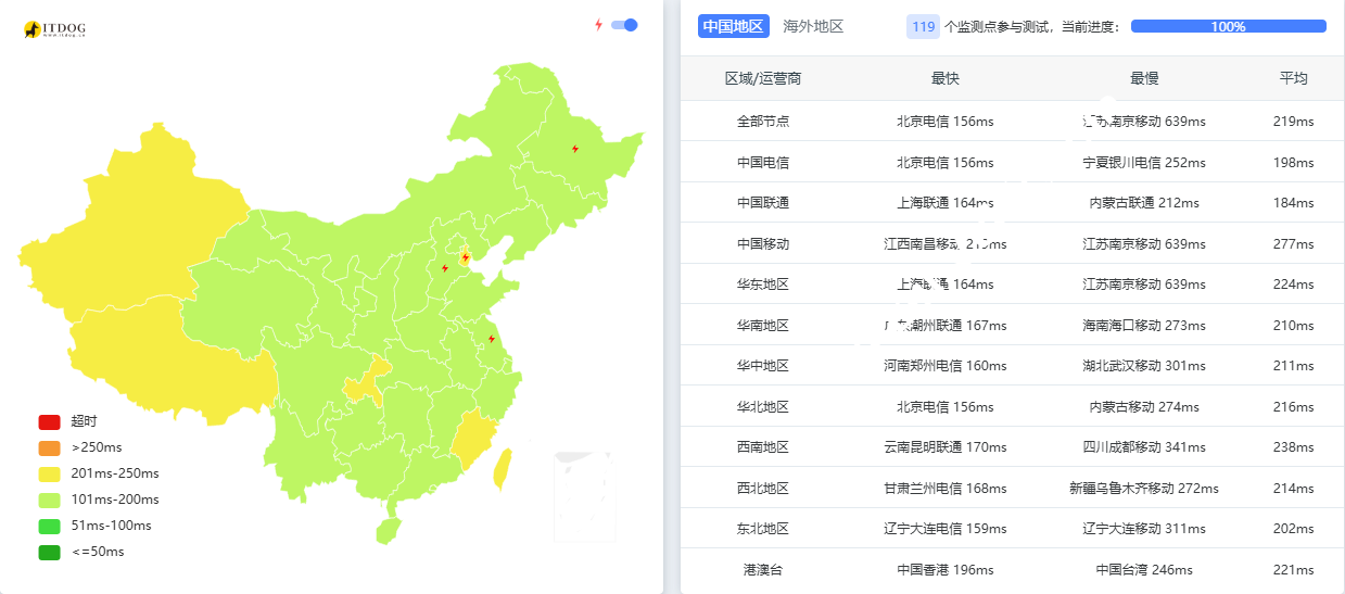 中国地区PING测试: