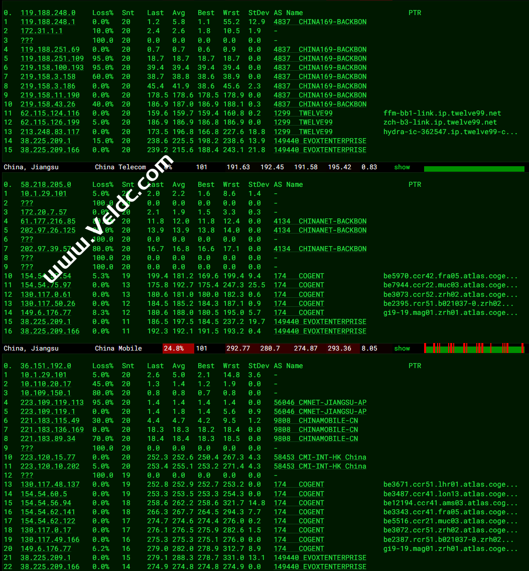 联通、电信、移动去程