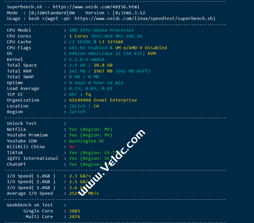 - Evoxt:瑞士VPS测评,1Gbps端口/cogentco线路/广播IP,解锁ChatGPT/TikTok等应用,月付$2.99起