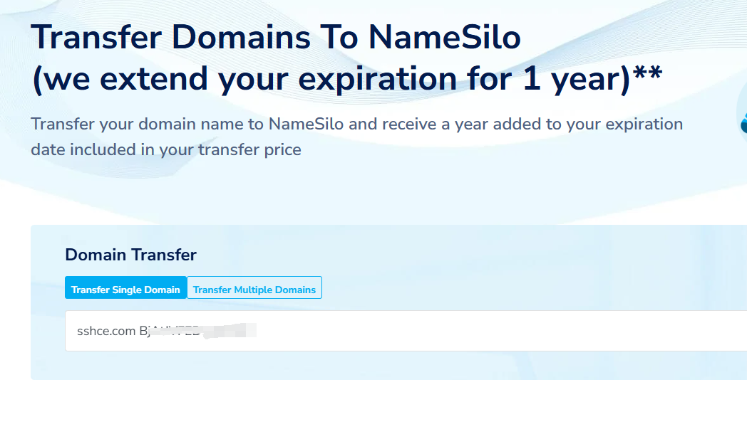 选择单个域名或多个域名转移,将要转移的域名和转移码填写好