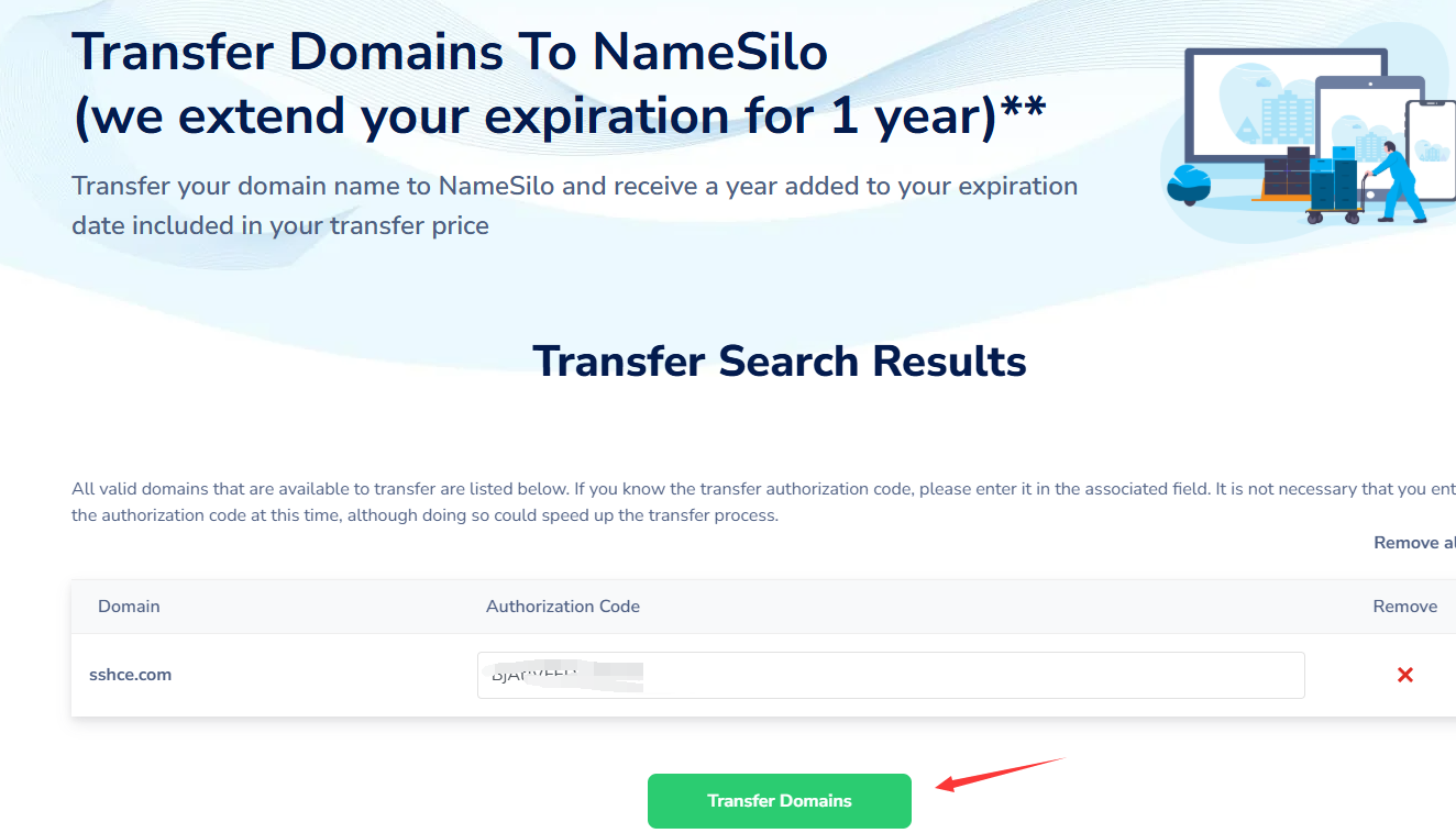 点击上面的域名转移: