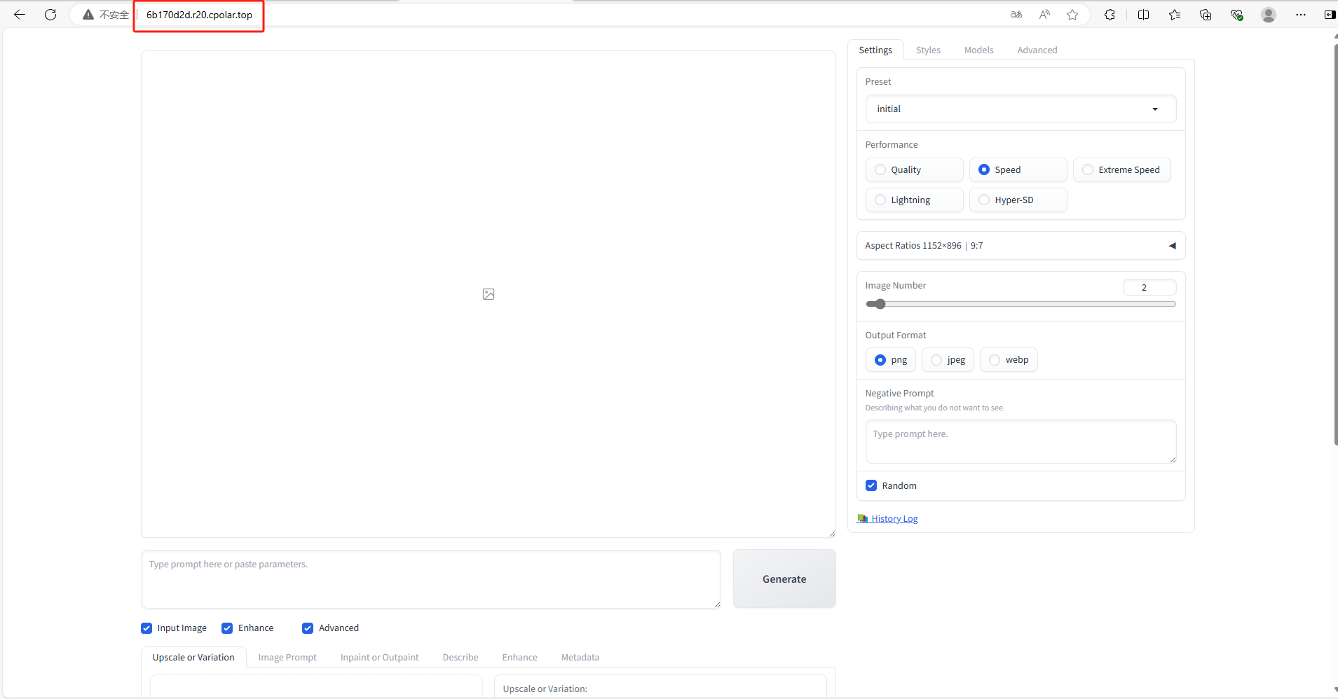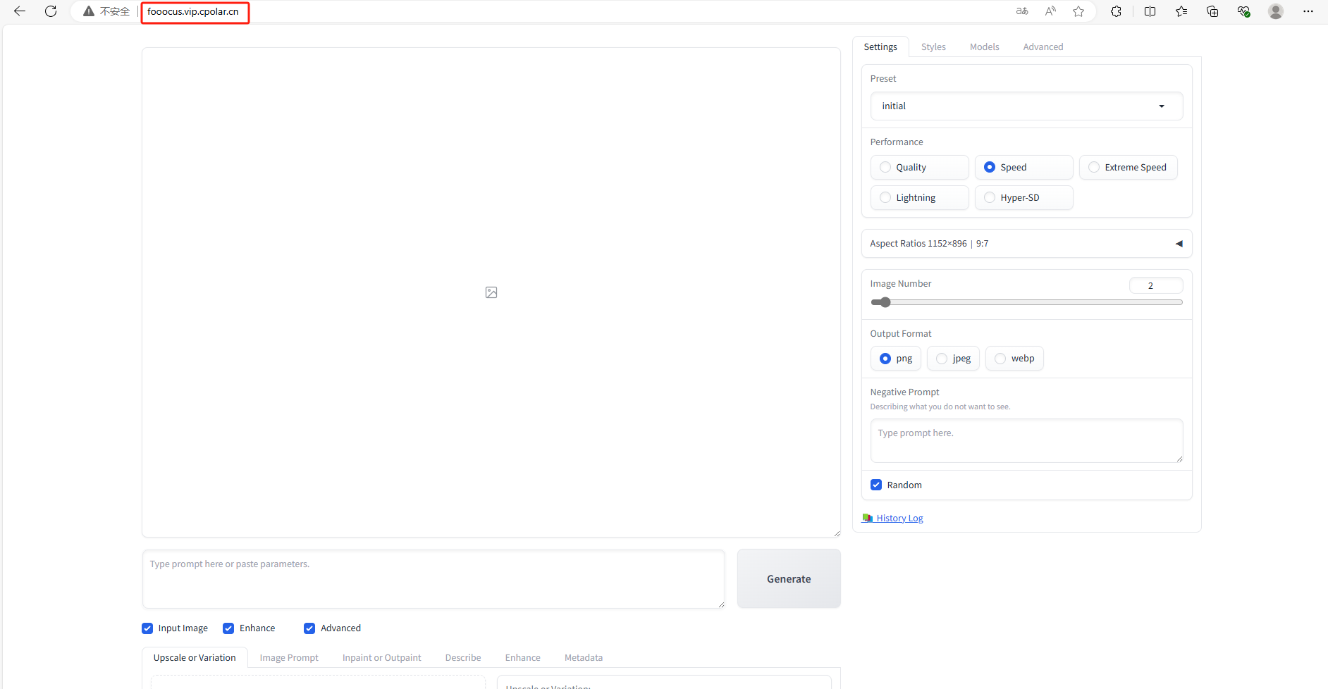 使用上面的Cpolar https公网地址,在浏览器进行登录访问,即可成功看到 Fooocus 界面,这样一个公网地址且可以远程访问就创建好了,使用了Cpolar的公网域名,无需自己购买云服务器,即可到公网访问 Fooocus了!