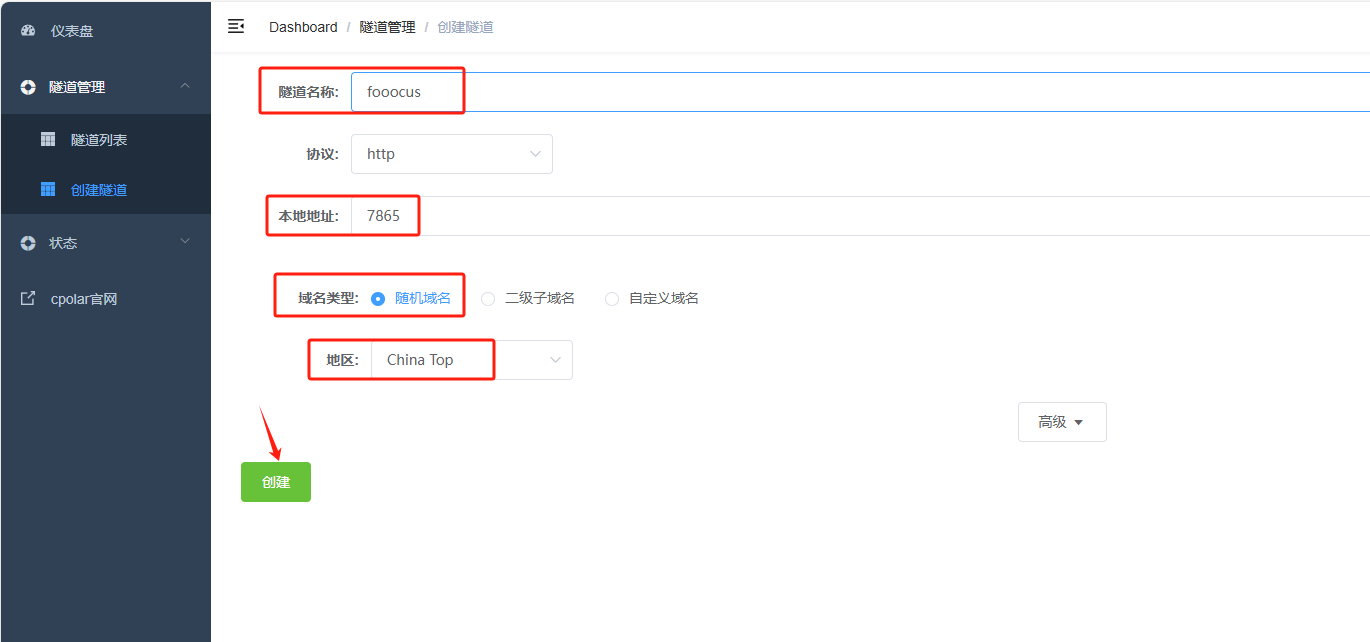 创建一个 Fooocus 的公网http地址隧道