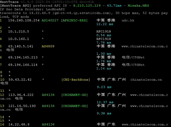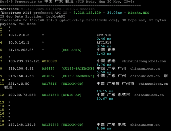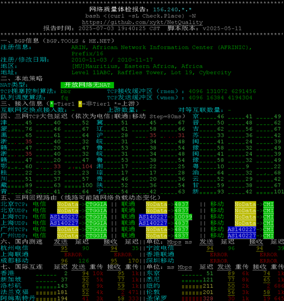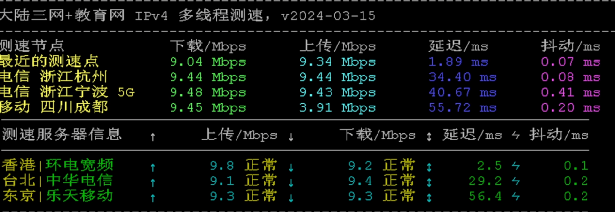 电信走的是59.43节点的CN2线路,联通走AS4837线路,移动走CMI线路。