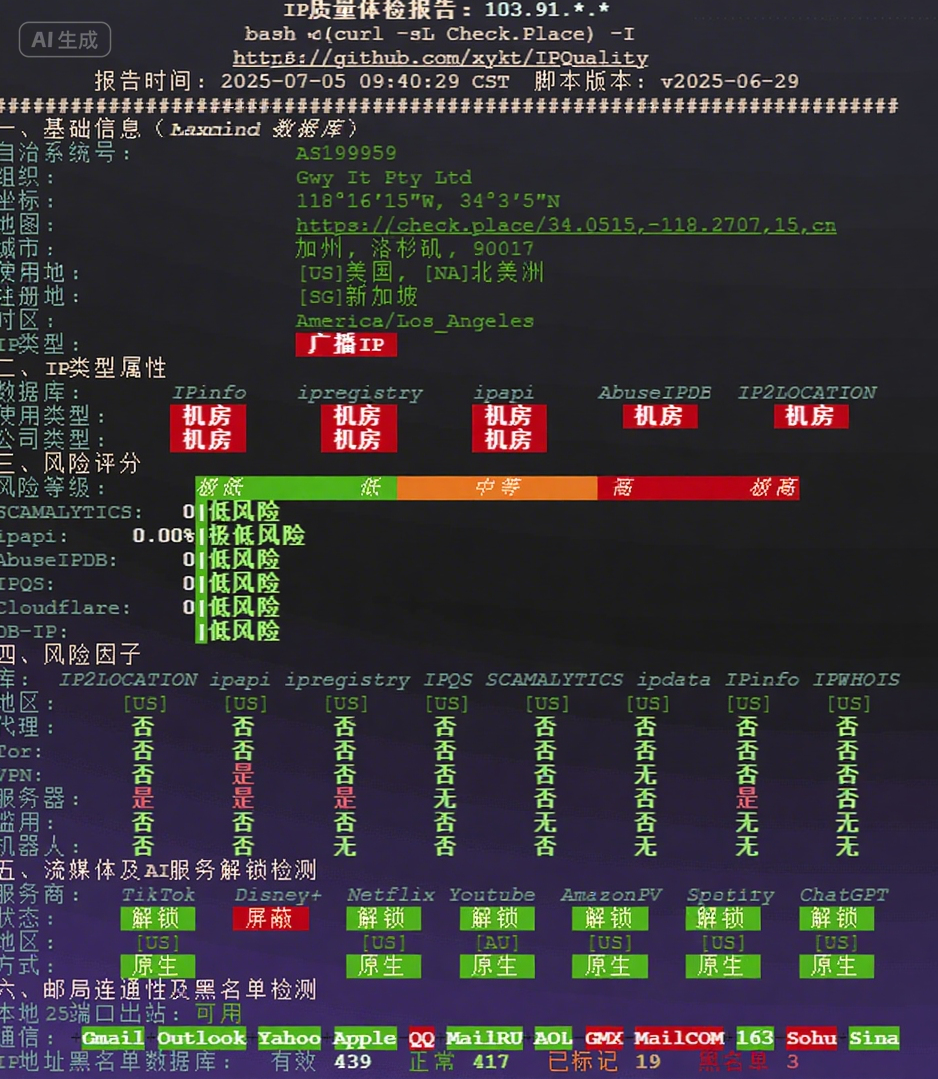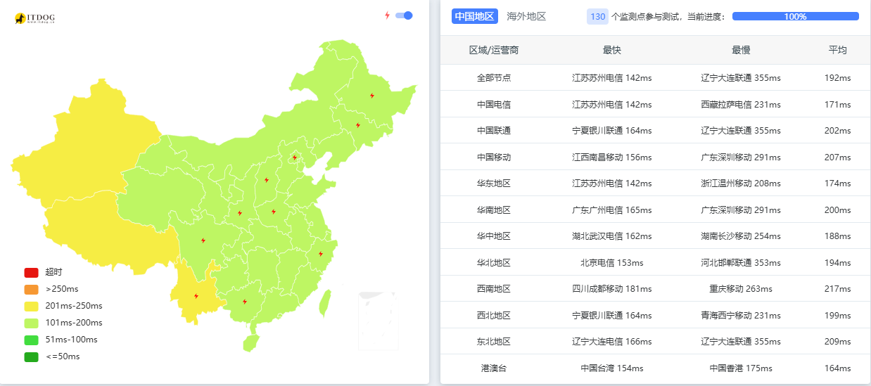 使用国内三网及港澳台ping测试,延迟属于正常美国西岸机房水准。