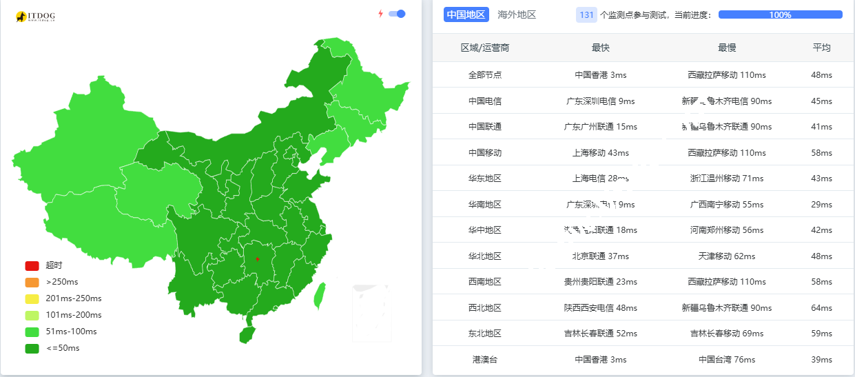 7 59.43.250.109 * [CN2-Global] 中国 广东 广州 chinatelecom.cn 电信