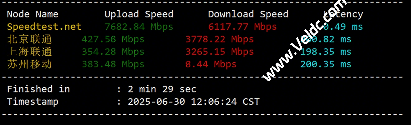 国内三网多节点上下行带宽测试:
