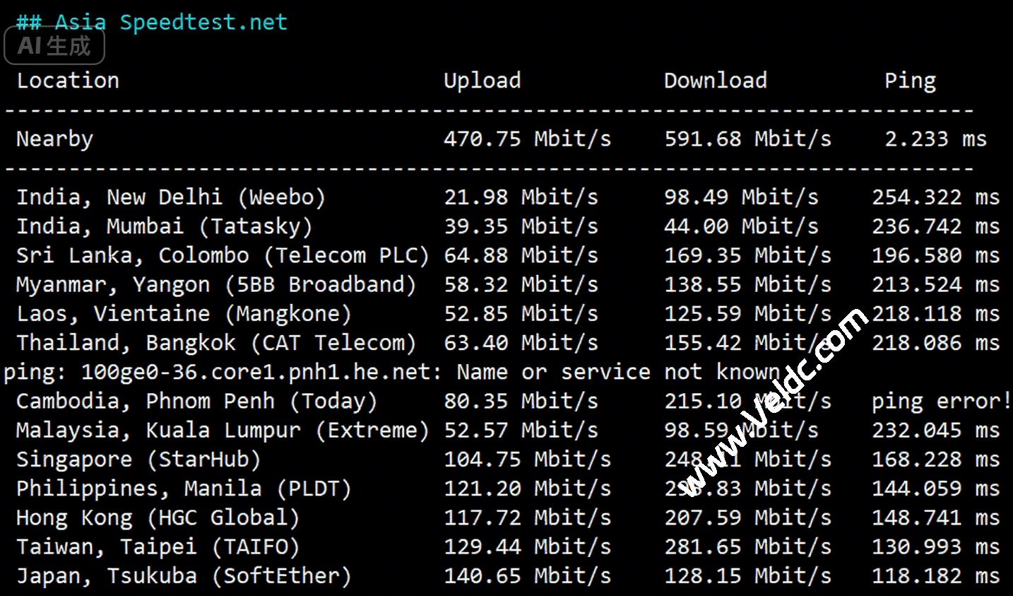 SpeedTest.Net部分亚洲的热门节点的带宽上下行测试数据: