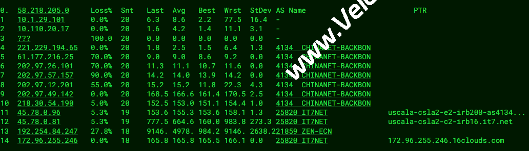 电信去程:直连电信美国洛杉矶节点然后接搬瓦工的网络去机房