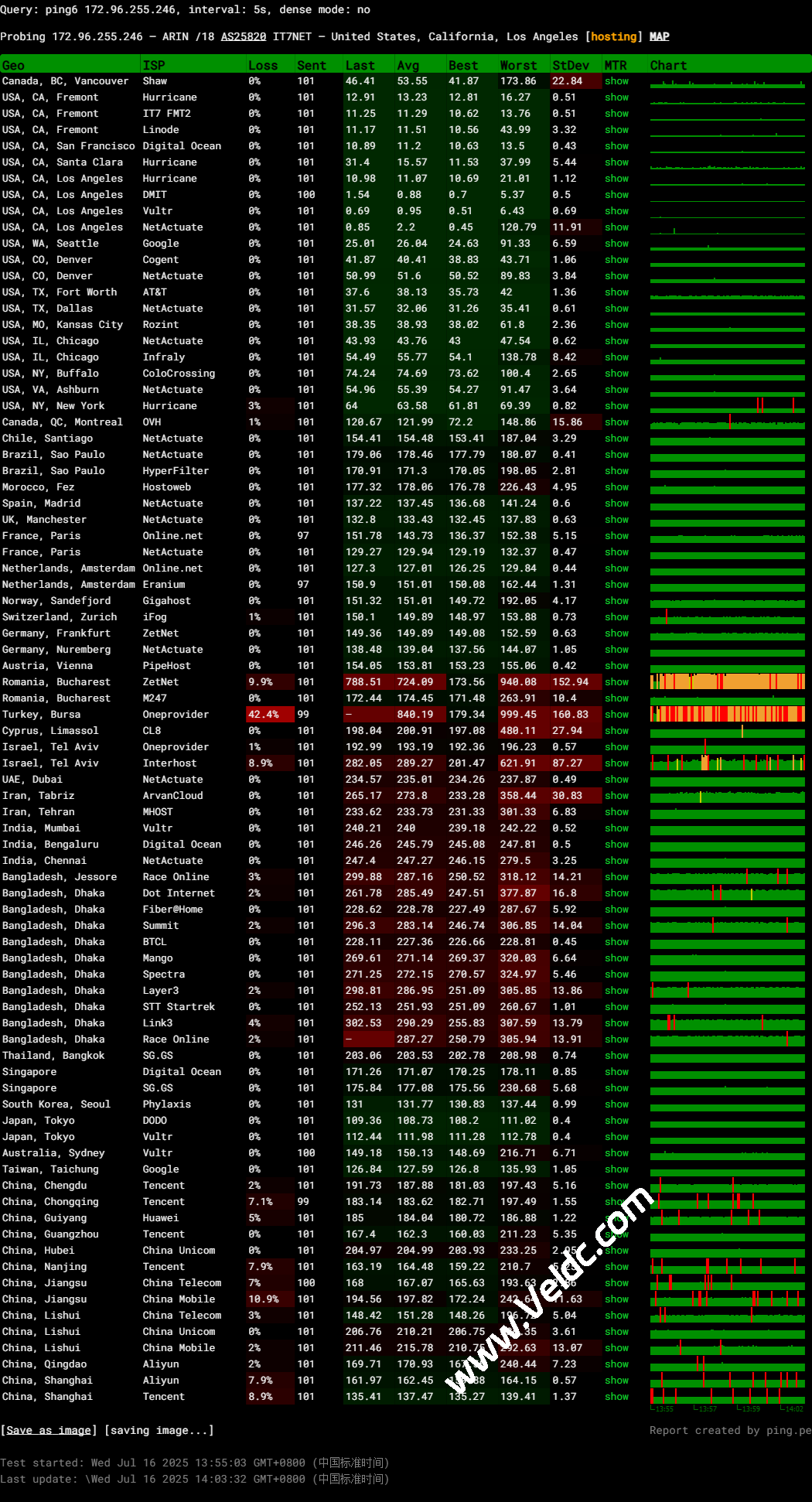 ping.pe丢包测试: